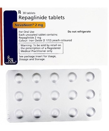 Repaglinide, koji se u Evropi i Hrvatskoj prodaje pod imenom NovoNorm, koristi se za kontrolu šećera u krvi kod pacijenata s tipom 2 dijabetesa. Uobičajeni režimi doziranja uključuju:
